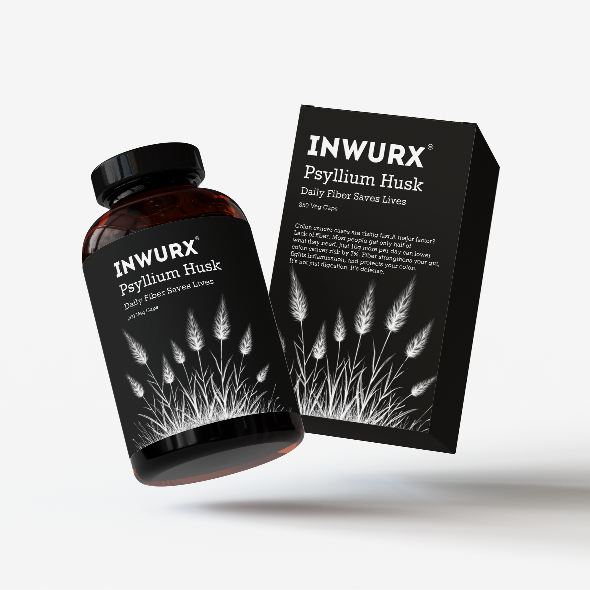 Inwurx Psyllium Husk & Chia Seeds (High Strength) is a clean, effective fiber supplement made with just two ingredients: 1,050 mg of psyllium husk and 450 mg of chia seed powder per serving. Designed to support digestion, regularity, and bloating relief, each bottle contains 250 capsules—over 80 servings of gut-friendly support. No fillers, no fluff—just a simple, powerful way to help your body feel lighter, cleaner, and more regular every day.
